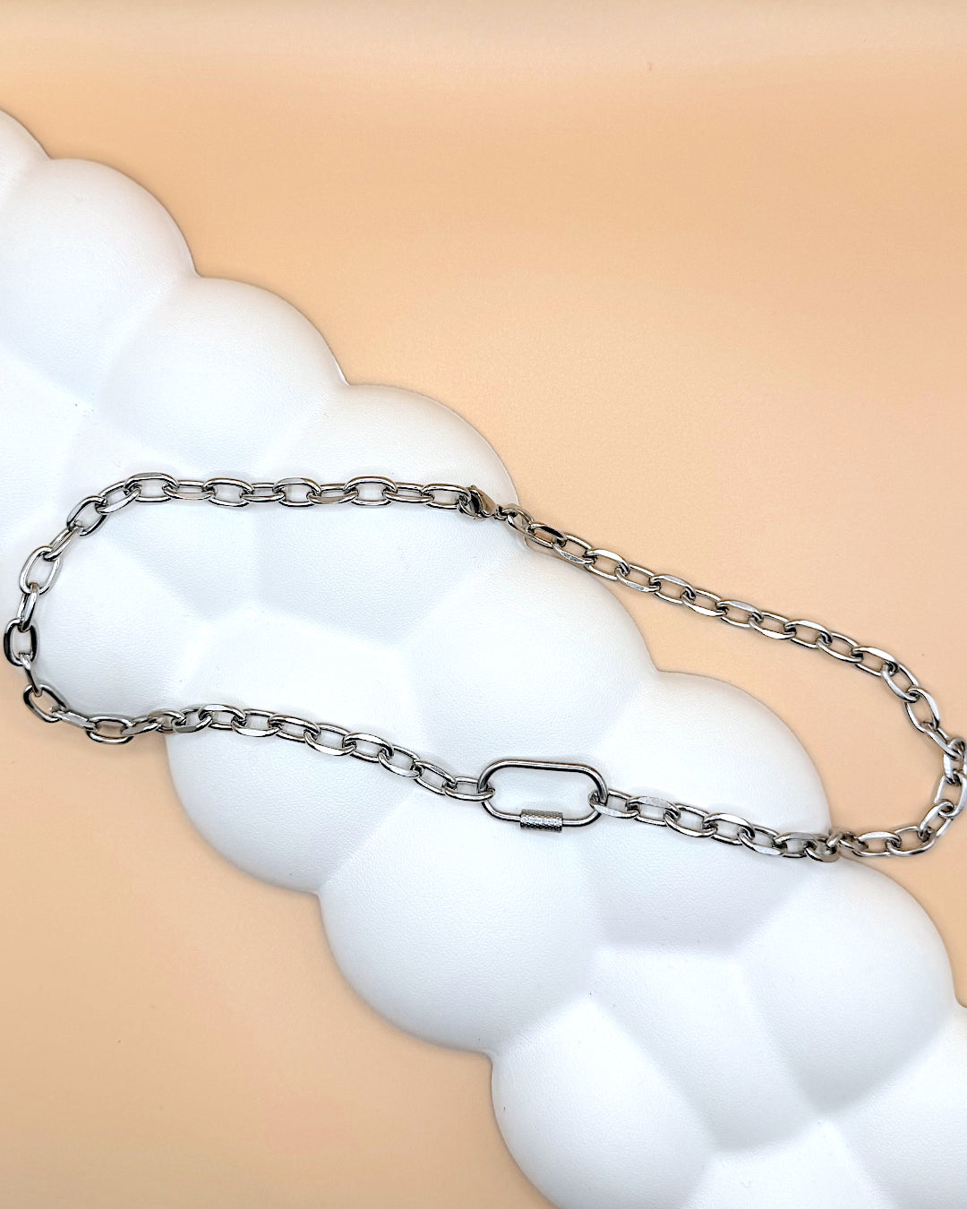 Bold, cute, and built to last—this necklace features a stainless steel carabiner that clasps in the front for an eye-catching finish. Paired with a delicate stainless steel rolo chain for the perfect blend of masc and femme.