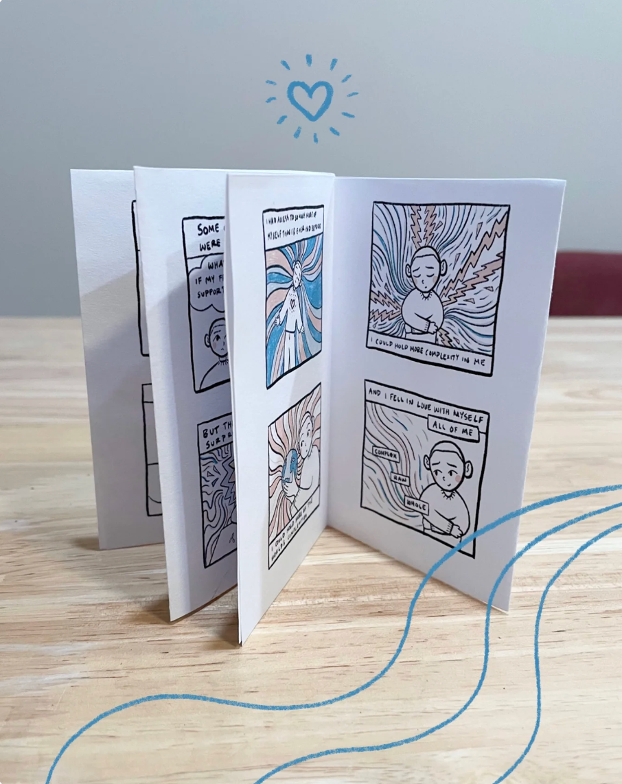 This zine was made for 8.5x11" printing paper, but feel free to adjust as you wish. We print this zine on white cardstock, but feel free to play around with color combinations.