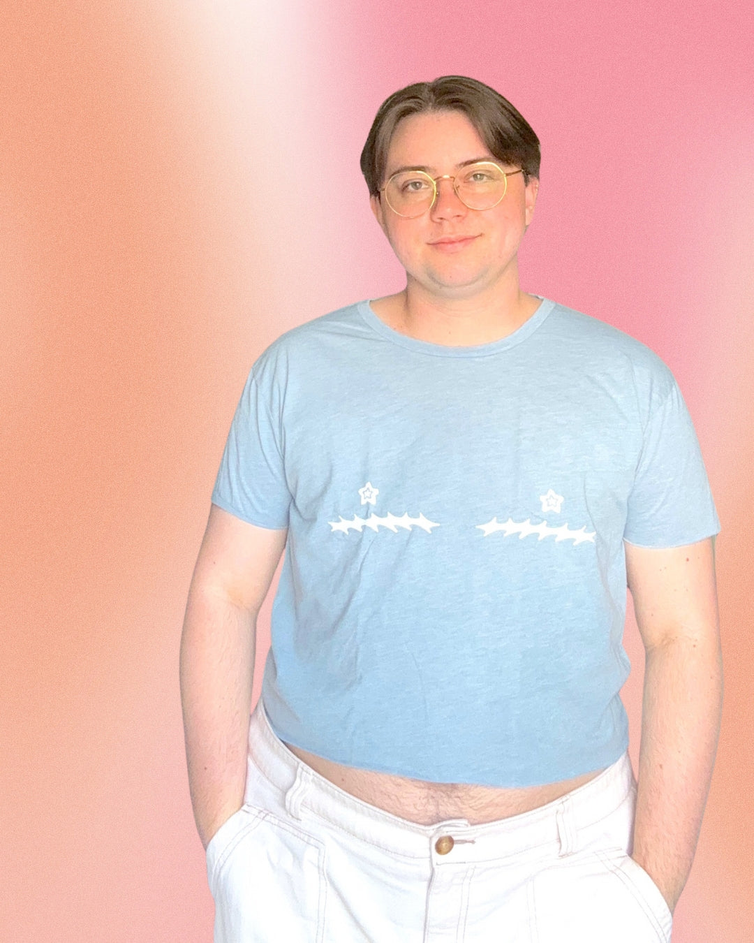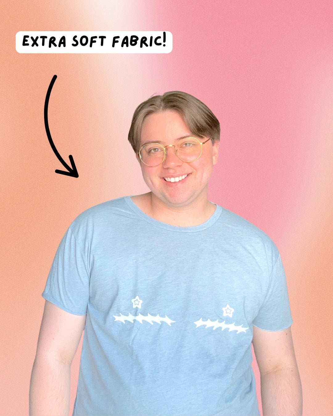 Designed specifically for trans masc folks, the subtle yet powerful illustration of top surgery scars is a nod to self-love, identity, and community. Whether you’ve had top surgery, are planning to, or simply want to show support, this shirt is a gentle, wearable affirmation of your journey.